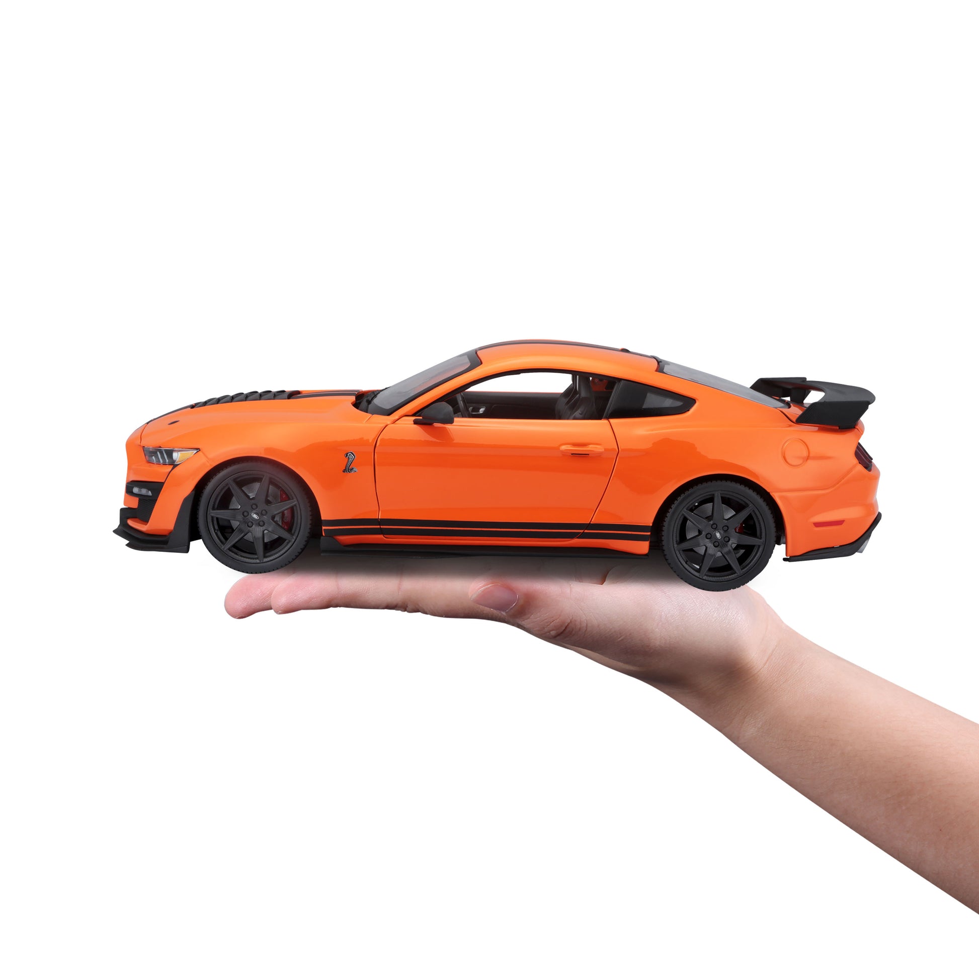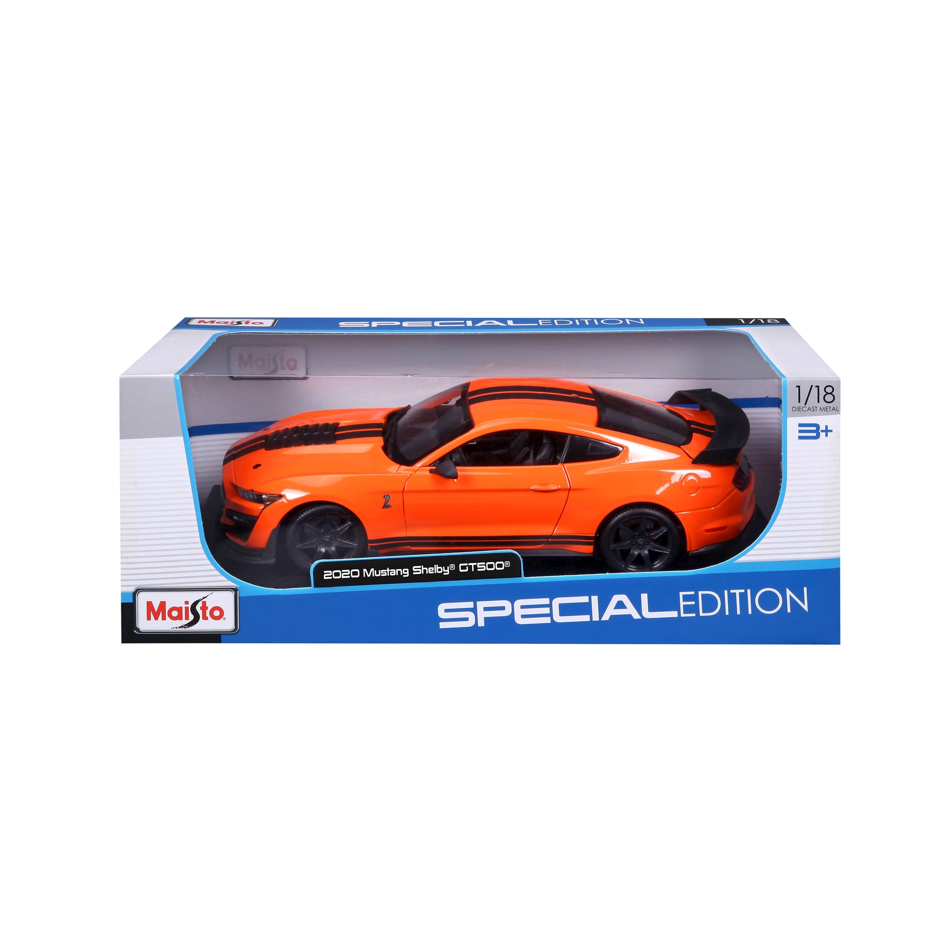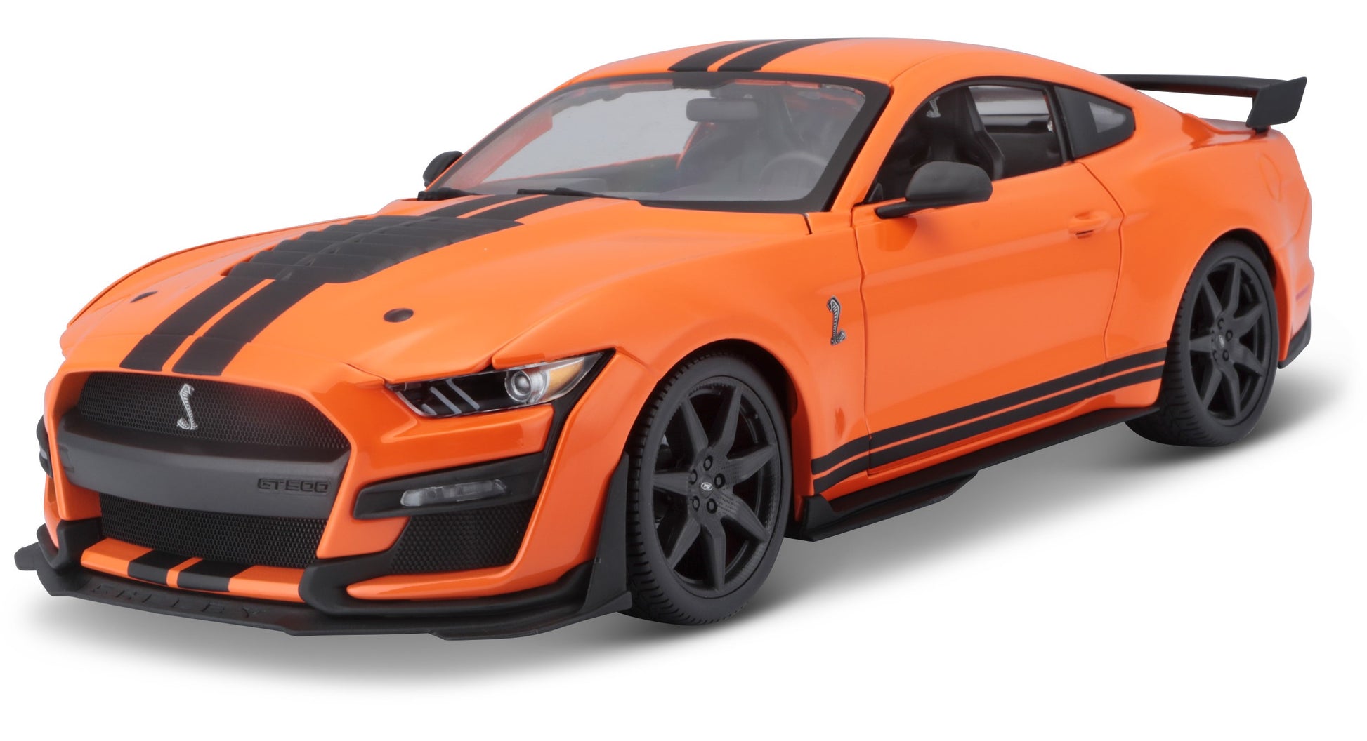 Orange Ford Mustang Shelby GT500 with Carbon Fibre Track Pack 1:18 collectible replica. A replica with CFTP is a must have Mustang and ford enthusiasts collectors. Licensed and produced by Maisto. Their reputation for quality and attention to detail is demonstrated in this diecast model car.